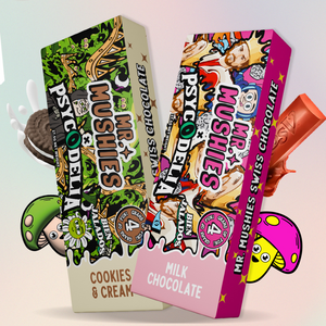 Take your senses to a whole new level with MR MUSHIES x PSYCODELIA Chocolate with Mushrooms, a collaboration that combines the expertise of two iconic brands. Each bar contains 4 grams of magic mushrooms, designed to give you a unique and unforgettable trip.